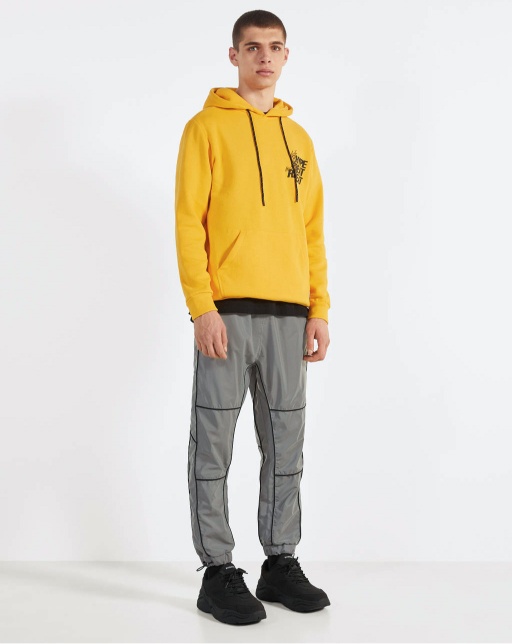 The insulated jacket is made of leather. A light layer of insulation. Details: stand-up collar, zipper, two pockets on the sides.