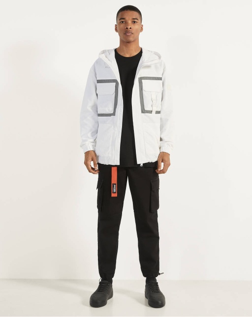 The insulated jacket is made of leather. A light layer of insulation. Details: stand-up collar, zipper, two pockets on the sides.